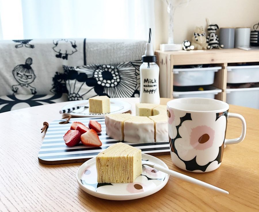 おしゃれでかわいい北欧ブランドといえば『marimekko(マリメッコ)』でしょう。マリメッコを代表する「Unikko(ウニッコ)」柄のマグカップは、カラーバリエーションも豊富で人気です。他にも、小さな花が集まった「Puketti(プケッティ)」柄、手書きのようなドットが並んだ「Rasymatto(ラシィマット)」柄や「Siirtolapuutarha(シイルトラプータルハ)」柄、シンプルな横縞の「Tasaraita(タサライタ)」柄など、マリメッコはテーブルを華やかにしてくれる印象的な柄のものがたくさん!好みのものを探すことができるのも大きな魅力です。