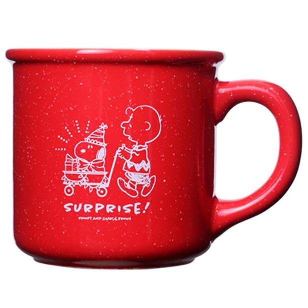おしゃれな外箱付きで、プレゼントにぴったりなスヌーピーのマグカップを発見!スヌーピーの「GIFTマグ」(各1650円)は、たくさんのプレゼントに紛れてキャリーカートに潜むスヌーピーと、カートを押すチャーリー・ブラウンがかわいすぎる赤カップと、星空の下で流れ星を見つけるスヌーピー&チャーリー・ブラウンを描いたダークブルーカップの2色展開。