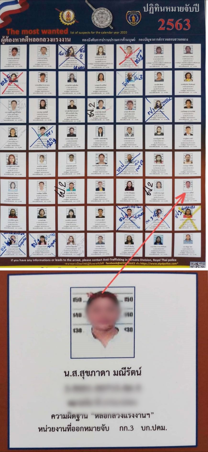 โดยจับกุมน.ส.สุขภาดา มณีรัตน์ อายุ 43 ปี ความผิดฐานหลอกลวงผู้อื่นว่าสามารถหางานหรือสามารถส่งไปฝึกงานในต่างประเทศได้ และโดยการหลอกลวงดังว่านั้นได้ไปซึ่งเงินหรือทรัพย์สินหรือประโยชน์อื่นใดจากผู้ถูกหลอกลวงและร่วมกันฉ้อโกง” ตามหมายจับศาลอาญาที่ 2701/2561 ลงวันที่ 29 พ.ย.2561 จับกุมได้ที่บริเวณหน้าร้านบริเวณถนนเคหะร่มเกล้า แขวงคลองสองต้นนุ่น เขตลาดกระบัง กทม.